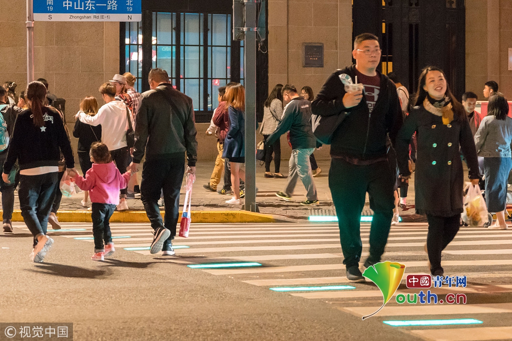 2018年10月10日,上海首條會(huì)發(fā)光人行道十一期間在外灘投入使用。