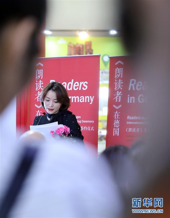 10月10日,在德國法蘭克福,中國電視節(jié)目主持人董卿在第70屆法蘭克福書展中國展區(qū)出席《朗讀者》朗讀會(huì)。
