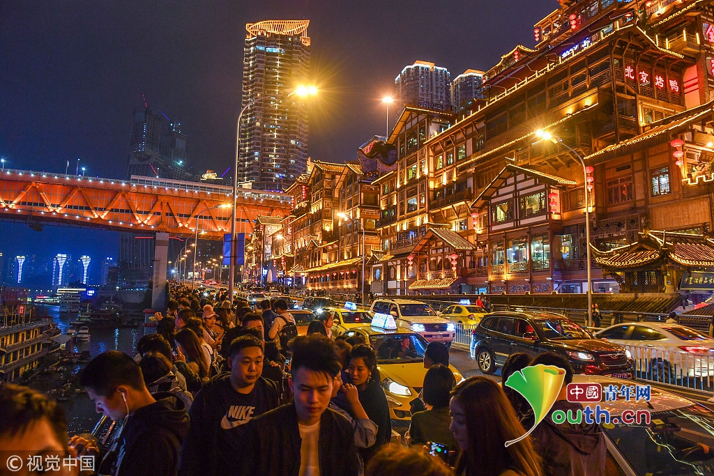 重慶網(wǎng)紅景點游人如織 洪崖洞夜景輝煌