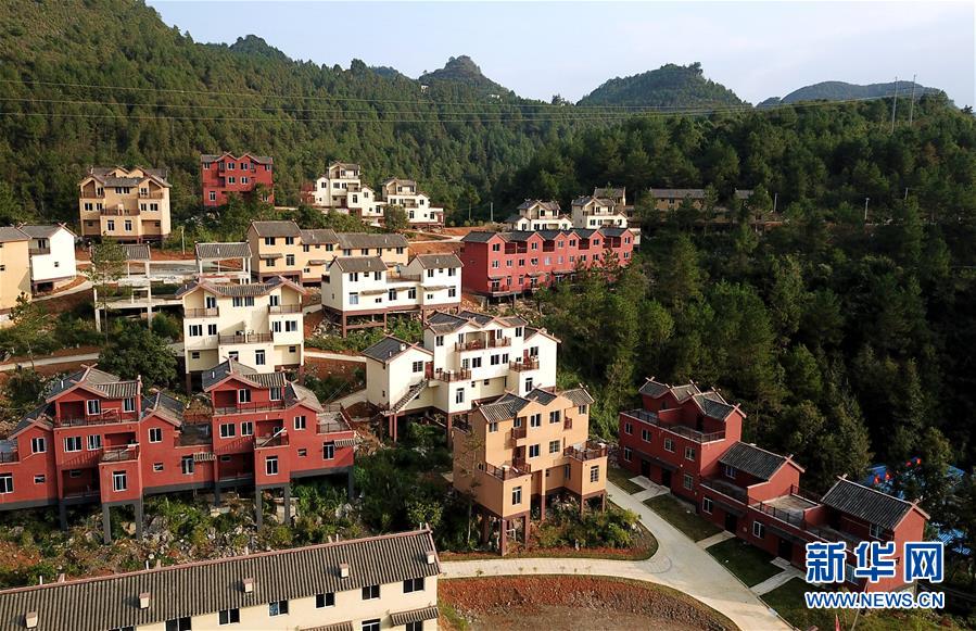 10月11日無人機(jī)拍攝的廣西南丹縣里湖瑤族鄉(xiāng)移民集中安置點(diǎn)。新華社記者 張愛林 攝
