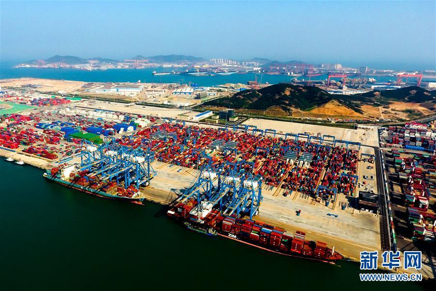 2018年5月4日無人機拍攝的青島港前灣自動化集裝箱碼頭。