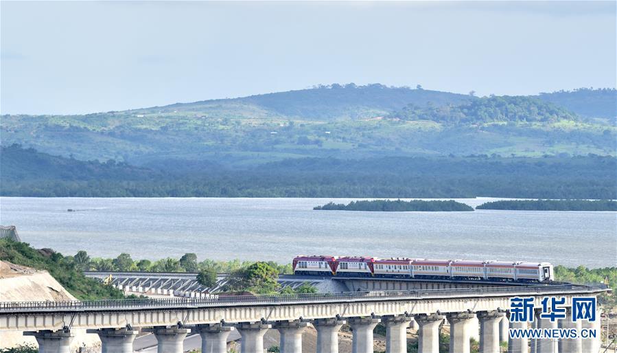 2017年5月29日,一列肯尼亞蒙內(nèi)鐵路測試列車行駛在蒙巴薩特大橋上。由中國承建的蒙巴薩-內(nèi)羅畢標(biāo)軌鐵路(蒙內(nèi)鐵路)全長約480公里,于2017年5月通車。
