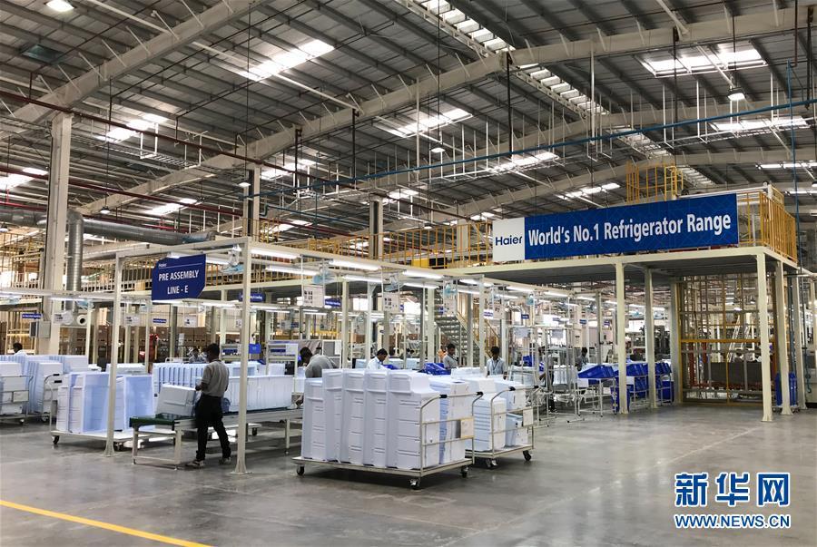 2017年11月16日,工人在位于印度馬哈拉施特拉邦浦那市的中國海爾集團(tuán)工業(yè)園廠房內(nèi)工作。