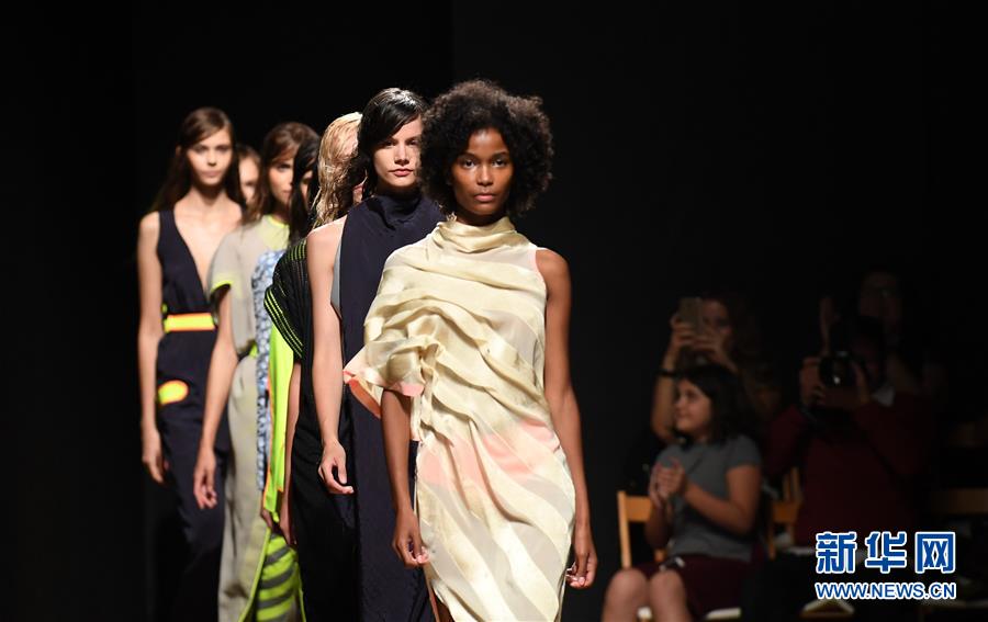 10月13日,在葡萄牙首都里斯本舉行的第51屆里斯本時裝周上,模特展示葡萄牙設(shè)計師亞歷山大·普羅蒂奇設(shè)計的新款時裝。 新華社記者張立云攝