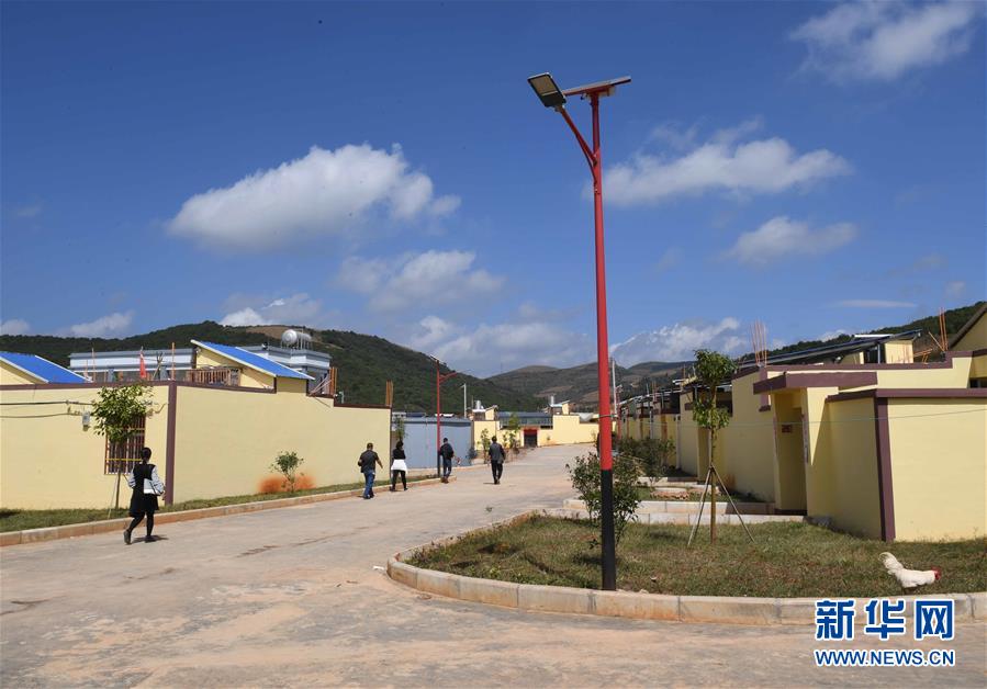 10月16日,人們行走在硯山縣小補(bǔ)佐村的道路上。 云南省文山壯族苗族自治州硯山縣稼依鎮(zhèn)小補(bǔ)佐村有55戶200多名壯族群眾曾經(jīng)居住在大山深處。2017年10月,在政府的幫扶下,小補(bǔ)佐村易地扶貧建設(shè)新村,村民全部搬遷入住新居。 新華社記者 楊宗友 攝