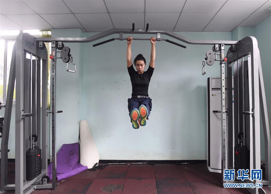 10月16日,湯春燕在健身房內(nèi)進(jìn)行擒敵訓(xùn)練。