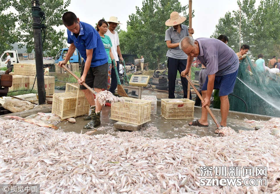 2018年8月12日,江蘇淮安洪澤湖全面開捕第四天,漁民進入銀魚和毛刀魚捕撈高峰期。