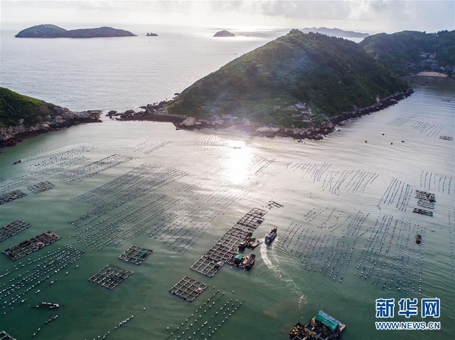 8月19日,空中俯瞰南麂島海域內(nèi)的“海上牧場(chǎng)”養(yǎng)殖區(qū)(無人機(jī)拍攝)。南麂島位于浙江東南海域,水質(zhì)好,水溫、鹽度都適合大黃魚等養(yǎng)殖魚類的生長(zhǎng)繁殖,因此當(dāng)?shù)氐乃a(chǎn)品也一直保持了較高的品質(zhì)和口碑。進(jìn)入8月,浙江省溫州市平陽縣南麂鎮(zhèn)海域上大片的大黃魚、貽貝等特色海產(chǎn)品養(yǎng)殖區(qū)域迎來豐收季節(jié),養(yǎng)殖戶們駕駛漁船在養(yǎng)殖區(qū)海域進(jìn)行打撈收獲,在碧海藍(lán)天下構(gòu)成了一幅“海上牧場(chǎng)”的美麗豐收景象。近年來,南麂鎮(zhèn)政府引導(dǎo)漁民養(yǎng)殖戶充分發(fā)揮“靠海吃?!钡馁Y源優(yōu)勢(shì),大力發(fā)展海洋養(yǎng)殖經(jīng)濟(jì)和海島旅游經(jīng)濟(jì),實(shí)現(xiàn)了南麂由“生態(tài)美”向“產(chǎn)業(yè)美”,“產(chǎn)業(yè)美”向“經(jīng)濟(jì)美”的轉(zhuǎn)變。同時(shí)該鎮(zhèn)堅(jiān)持以大黃魚、貽貝等為特色產(chǎn)業(yè)支撐,精準(zhǔn)發(fā)展高效海洋養(yǎng)殖業(yè),重點(diǎn)培養(yǎng)一批新型職業(yè)漁民,依靠專業(yè)技術(shù)支持,實(shí)現(xiàn)深海仿生養(yǎng)殖,讓好生態(tài)造就好品質(zhì),重點(diǎn)打造南麂養(yǎng)殖品牌,組建營銷網(wǎng)絡(luò),拓展特色海產(chǎn)品市場(chǎng)。新華社記者 徐昱攝