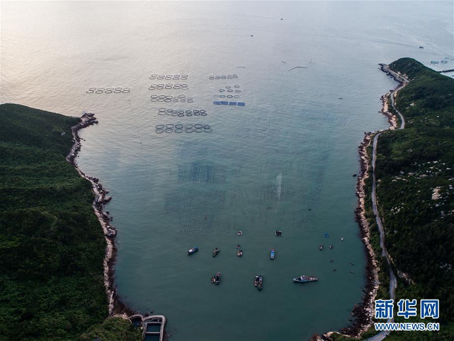 8月18日,南麂島馬祖岙海域的“海上牧場”養(yǎng)殖區(qū)(無人機拍攝)。南麂島位于浙江東南海域,水質(zhì)好,水溫、鹽度都適合大黃魚等養(yǎng)殖魚類的生長繁殖,因此當?shù)氐乃a(chǎn)品也一直保持了較高的品質(zhì)和口碑。進入8月,浙江省溫州市平陽縣南麂鎮(zhèn)海域上大片的大黃魚、貽貝等特色海產(chǎn)品養(yǎng)殖區(qū)域迎來豐收季節(jié),養(yǎng)殖戶們駕駛漁船在養(yǎng)殖區(qū)海域進行打撈收獲,在碧海藍天下構成了一幅“海上牧場”的美麗豐收景象。近年來,南麂鎮(zhèn)政府引導漁民養(yǎng)殖戶充分發(fā)揮“靠海吃?!钡馁Y源優(yōu)勢,大力發(fā)展海洋養(yǎng)殖經(jīng)濟和海島旅游經(jīng)濟,實現(xiàn)了南麂由“生態(tài)美”向“產(chǎn)業(yè)美”,“產(chǎn)業(yè)美”向“經(jīng)濟美”的轉(zhuǎn)變。同時該鎮(zhèn)堅持以大黃魚、貽貝等為特色產(chǎn)業(yè)支撐,精準發(fā)展高效海洋養(yǎng)殖業(yè),重點培養(yǎng)一批新型職業(yè)漁民,依靠專業(yè)技術支持,實現(xiàn)深海仿生養(yǎng)殖,讓好生態(tài)造就好品質(zhì),重點打造南麂養(yǎng)殖品牌,組建營銷網(wǎng)絡,拓展特色海產(chǎn)品市場。新華社記者 徐昱攝