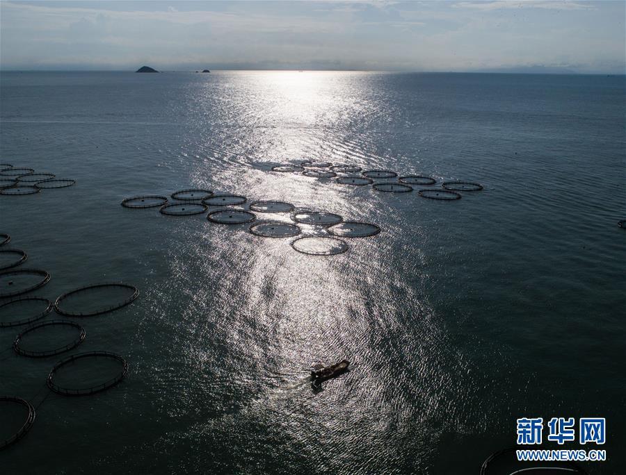 8月18日,漁船行駛在南麂島馬祖岙海域內(nèi)的“海上牧場”大黃魚養(yǎng)殖區(qū)(無人機(jī)拍攝)。進(jìn)入8月,浙江省溫州市平陽縣南麂鎮(zhèn)海域上大片的大黃魚、貽貝等特色海產(chǎn)品養(yǎng)殖區(qū)域迎來豐收季節(jié),養(yǎng)殖戶們駕駛漁船在養(yǎng)殖區(qū)海域進(jìn)行打撈收獲,在碧海藍(lán)天下構(gòu)成了一幅“海上牧場”的美麗豐收景象。近年來,南麂鎮(zhèn)政府引導(dǎo)漁民養(yǎng)殖戶充分發(fā)揮“靠海吃?!钡馁Y源優(yōu)勢(shì),大力發(fā)展海洋養(yǎng)殖經(jīng)濟(jì)和海島旅游經(jīng)濟(jì),實(shí)現(xiàn)了南麂由“生態(tài)美”向“產(chǎn)業(yè)美”,“產(chǎn)業(yè)美”向“經(jīng)濟(jì)美”的轉(zhuǎn)變。同時(shí)該鎮(zhèn)堅(jiān)持以大黃魚、貽貝等為特色產(chǎn)業(yè)支撐,精準(zhǔn)發(fā)展高效海洋養(yǎng)殖業(yè),重點(diǎn)培養(yǎng)一批新型職業(yè)漁民,依靠專業(yè)技術(shù)支持,實(shí)現(xiàn)深海仿生養(yǎng)殖,讓好生態(tài)造就好品質(zhì),重點(diǎn)打造南麂養(yǎng)殖品牌,組建營銷網(wǎng)絡(luò),拓展特色海產(chǎn)品市場。新華社記者 徐昱攝