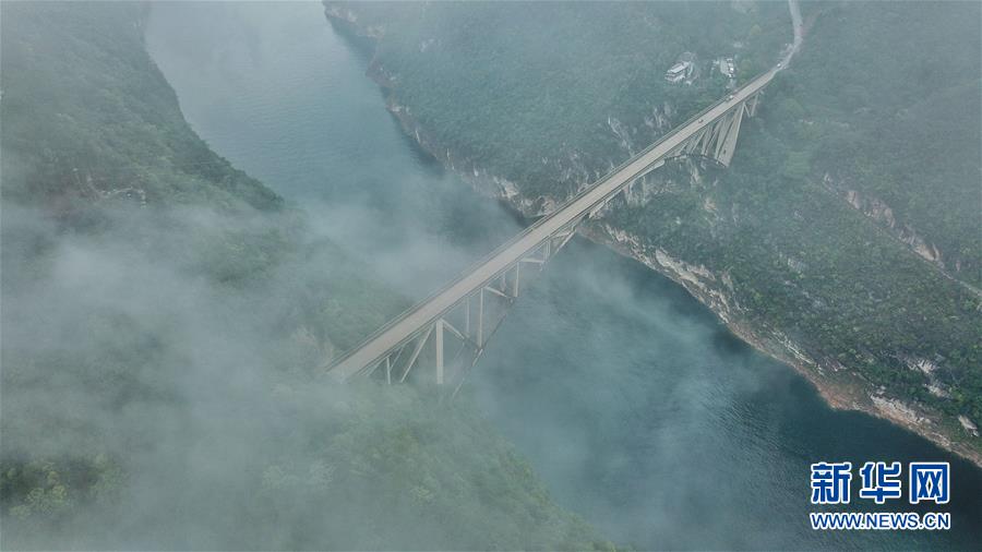 10月18日無(wú)人機(jī)航拍的江界河大橋。 新華社記者歐東衢攝