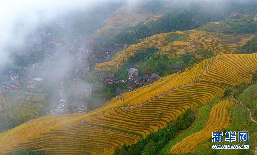 這是10月16日無(wú)人機(jī)拍攝的龍脊梯田秋色。金秋時(shí)節(jié),廣西龍勝各族自治縣龍脊梯田美如畫卷。 新華社記者 黃孝邦 攝