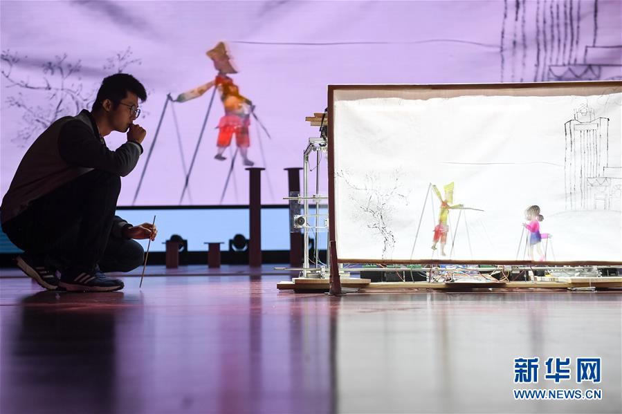 10月21日,在位于安徽合肥的中國科學(xué)技術(shù)大學(xué),“人五成影”隊(duì)帶著皮影戲機(jī)器人參加比賽。新華社記者張端攝