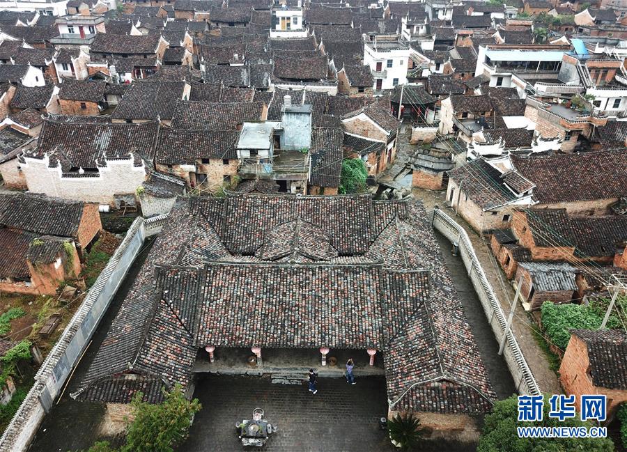 廣西富川瑤族自治縣朝東鎮(zhèn)福溪村連片古民居群(10月19日無人機拍攝)?! ⌒氯A社記者 周華 攝