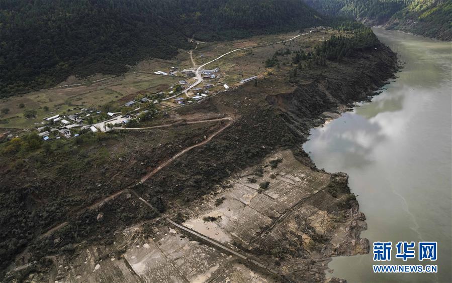 10月20日,西藏雅魯藏布江米林縣堰塞湖自然過流,露出通往加拉村的道路。 10月19日13時30分,西藏雅魯藏布江米林縣堰塞湖開始自然過流。記者從應(yīng)急管理部牽頭的聯(lián)合工作組獲悉,截至20日7時,雅魯藏布江堰塞湖壩前水位已下降56米,估算留存水量1.6億立方米,堰塞湖洪水威脅得到緩解,防洪安全風(fēng)險大大減輕,并將繼續(xù)降低。 10月20日,記者乘坐直升機從空中拍攝了雅魯藏布江堰塞湖自然過流的畫面。 新華社記者普布扎西攝