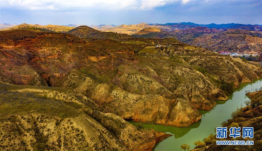 10月21日無人機(jī)拍攝的黃昏時(shí)分的王家灣丹霞地貌。 新華社記者陶明攝