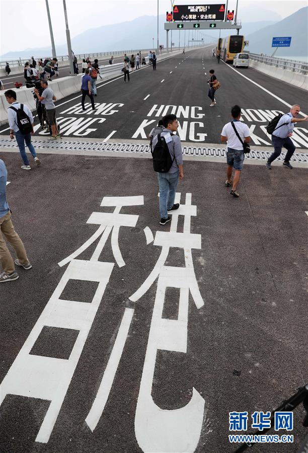 10月19日,媒體記者在港珠澳大橋香港連接路部分參觀。 港珠澳大橋開通在即。 新華社記者 李鋼 攝