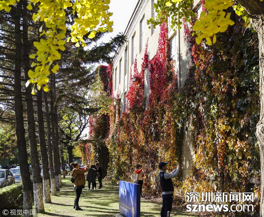最美校園 !大學內建筑被爬山虎包圍 滿墻火紅美如畫