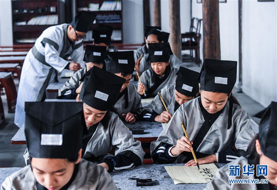 10月23日,學(xué)生們?cè)趨⒓印罢\(chéng)敬日”傳統(tǒng)書(shū)法學(xué)習(xí)。當(dāng)日,浙江省長(zhǎng)興縣第八小學(xué)舉行“誦家規(guī)家訓(xùn),傳中華美德”校園“誠(chéng)敬日”主題教育活動(dòng),通過(guò)誦讀國(guó)學(xué)經(jīng)典、講勵(lì)志故事、演美德戲劇等形式,讓學(xué)生感受優(yōu)秀傳統(tǒng)文化。近年來(lái),該學(xué)校立足“誠(chéng)敬”文化,注重國(guó)學(xué)啟蒙教育,讓學(xué)生從小培養(yǎng)“以誠(chéng)立身、以敬處事”的良好品質(zhì)。新華社記者 徐昱 攝