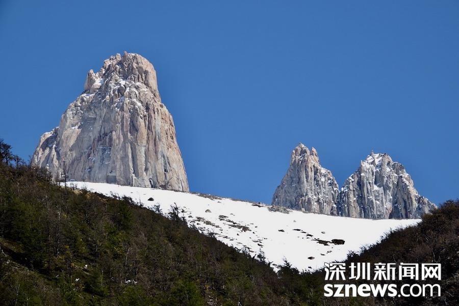 百內國家公園內的三塔峰是智利乃至南美洲久負盛名的徒步旅游景點。三座塔峰兀然聳立,海拔高度都在2200米以上,方圓幾十公里之外都能看到它們的倩影。這個景點對全球戶外旅游愛好者有著非凡的魅力。徒步愛好者歷經10小時征服三塔峰,拍下沿途美景。李仁奇 攝