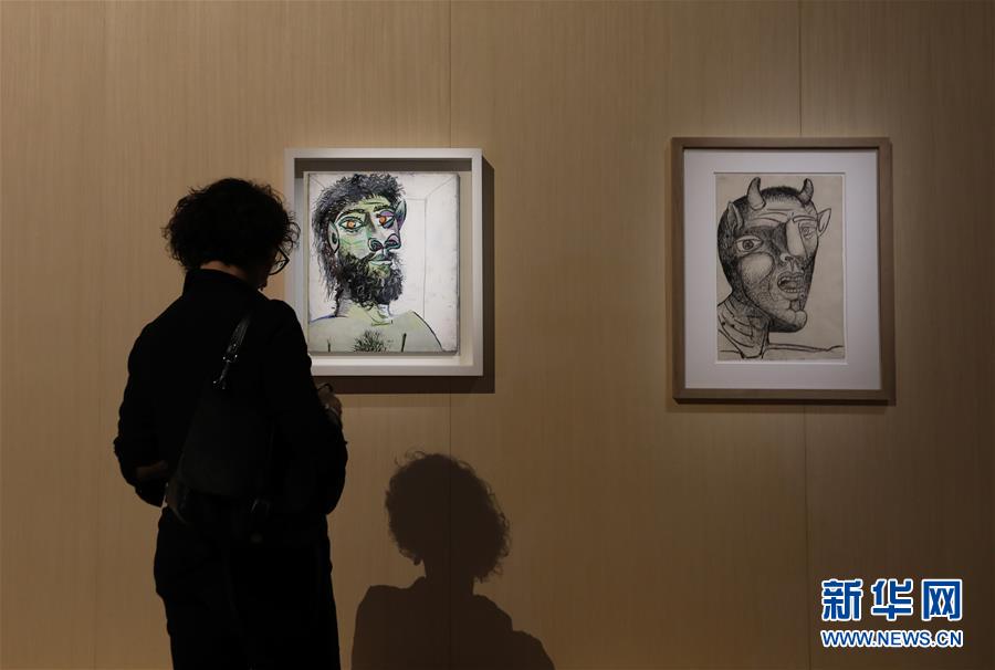 10月24日,在意大利米蘭,一名女子在“畢加索·變形記”展上觀(guān)看畢加索作品《有胡須的男人頭像》。 新華社記者程婷婷攝