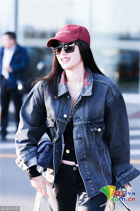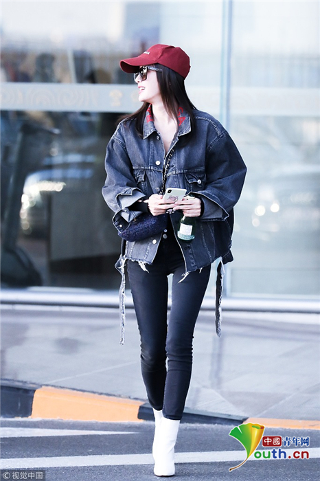 2018年10月24日,北京,“富察皇后”秦嵐現(xiàn)身機場。她頭戴小紅帽,身穿黑色緊身褲顯美腿筆直修長,上身穿著牛仔外套青春逼人,邊走邊甜笑玩“撩發(fā)殺”,靚麗吸睛。