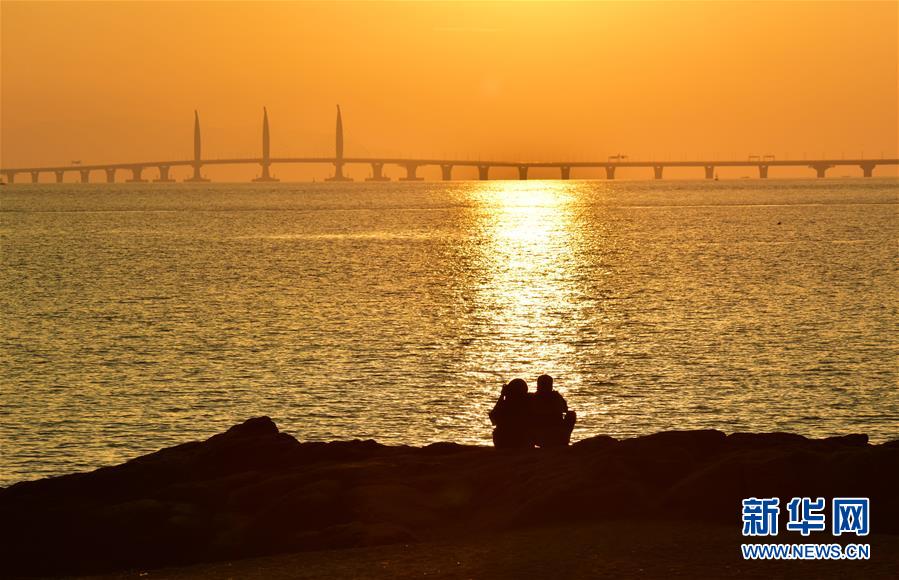 日出時分的港珠澳大橋(2018年10月22日攝)。 金秋十月,伶仃洋上海天一色、潮聲陣陣,依傍著這片中國南海水域的城市群迎來深具意義的一天。 10月23日上午,港珠澳大橋開通儀式在廣東珠海舉行,中共中央總書記、國家主席、中央軍委主席習近平出席儀式,宣布大橋正式開通。 碧波之上,一橋飛架香港、澳門、珠海三地,以氣貫長虹的“中國跨度”,飛越滄海百年的歷史風云,展現當代中國的雄健風采。 新華社記者殷博古攝