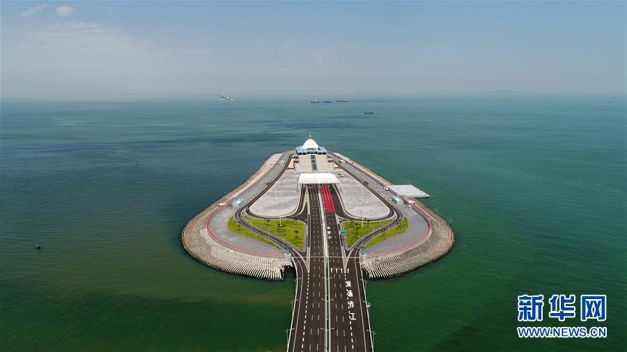 從港珠澳大橋東人工島遙望西人工島,中間是海底隧道(2018年7月11日無人機(jī)拍攝)。 金秋十月,伶仃洋上海天一色、潮聲陣陣,依傍著這片中國(guó)南海水域的城市群迎來深具意義的一天。 10月23日上午,港珠澳大橋開通儀式在廣東珠海舉行,中共中央總書記、國(guó)家主席、中央軍委主席習(xí)近平出席儀式,宣布大橋正式開通。 碧波之上,一橋飛架香港、澳門、珠海三地,以氣貫長(zhǎng)虹的“中國(guó)跨度”,飛越滄海百年的歷史風(fēng)云,展現(xiàn)當(dāng)代中國(guó)的雄健風(fēng)采。 新華社記者梁旭攝