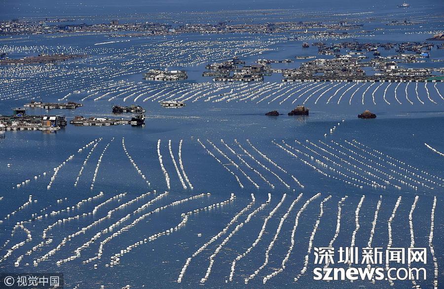 深圳新聞網(wǎng)訊 2018年10月26日,在福建連江海域上,“海上田園”網(wǎng)箱羅列,漁排上搭建的木屋錯(cuò)落成“戶”,蔚為壯觀,成為一道獨(dú)特的風(fēng)景線。福建省連江縣是中國鮑魚養(yǎng)殖第一大縣。