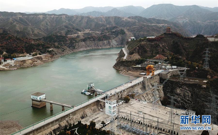 這是10月24日無人機拍攝的劉家峽水庫大壩。 新華社記者 陳斌 攝