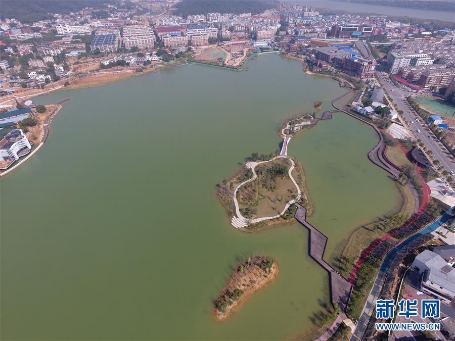 空中俯瞰長沙后湖全景(10月29日無人機(jī)拍攝)。 近日,湖南長沙后湖水環(huán)境綜合整治工程全面完工,沿湖生態(tài)環(huán)境舊貌換新顏,成為市民游客休閑散步的好去處。 新華社記者 龍弘濤 攝