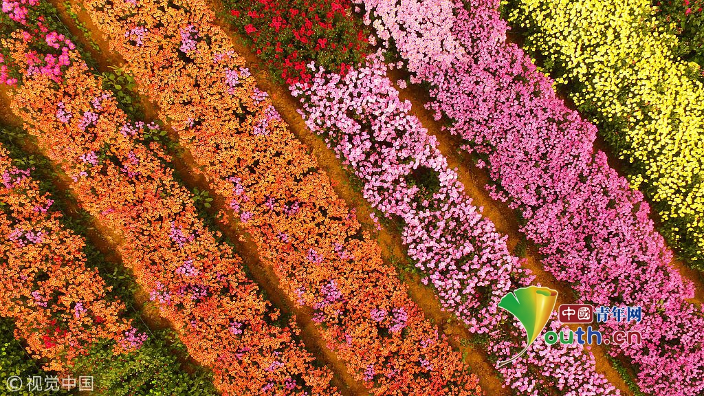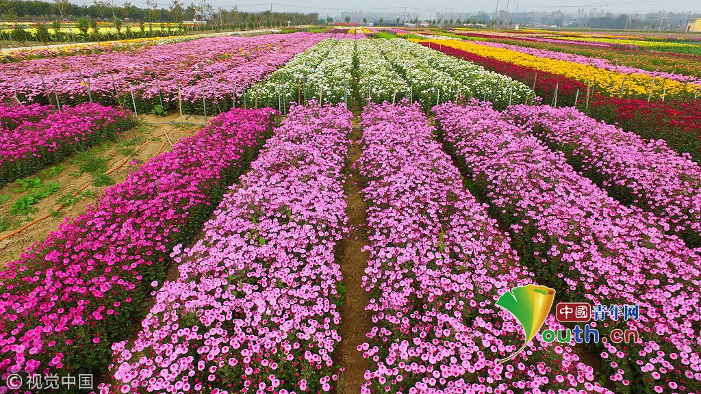 2018年11月1日,河南許昌,航拍的許昌華育花卉觀賞彩菊種植基地。