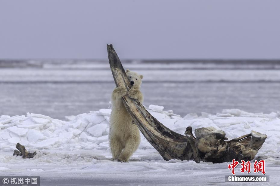 11月1日訊(具體拍攝時(shí)間不詳),美國(guó)阿拉斯加州,一只北極熊媽媽帶著幼崽們外出覓食,發(fā)現(xiàn)了一節(jié)長(zhǎng)4.5米的北極露脊鯨骸骨。75噸重的鯨魚(yú)對(duì)因紐皮亞特人來(lái)說(shuō)是神圣的,他們每年要吃三次鯨魚(yú),把骨頭放在指定的地方,讓北極熊吃完粘在骨頭上的碎肉。攝影師Eiji Itoyama為拍攝此照片在位于北冰洋邊緣的阿拉斯加卡克托維克村停留了5天。圖片來(lái)源:視覺(jué)中國(guó)