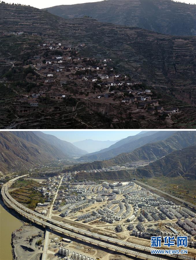這是一張拼版照片。上圖為隴南市武都區(qū)坪埡藏族鄉(xiāng)腰道村全景(2016年9月1日攝);下圖為隴南市武都區(qū)的“新坪埡”全景(10月31日無(wú)人機(jī)拍攝)。歷經(jīng)3年多的建設(shè),在甘肅省隴南市武都區(qū)白龍江畔,一個(gè)嶄新的“新坪埡”即將建成,預(yù)計(jì)今年年底實(shí)現(xiàn)全面建成搬遷。 坪埡藏族鄉(xiāng)是甘肅省隴南市25個(gè)特困片區(qū)鄉(xiāng)鎮(zhèn)之一,2015年,當(dāng)?shù)卣龀銎簣翰刈遴l(xiāng)易地扶貧搬遷重大決策,對(duì)深山上的8個(gè)村1236戶5731人實(shí)施易地扶貧搬遷,總投資4.69億元,是甘肅省“十三五”時(shí)期易地扶貧搬遷工程重點(diǎn)建設(shè)項(xiàng)目。 全面建成搬遷后,當(dāng)?shù)卣畬?duì)搬遷安置區(qū)與周邊景區(qū)進(jìn)行整體規(guī)劃,打造民族風(fēng)情和鄉(xiāng)村生態(tài)旅游村;同時(shí)加大群眾專業(yè)技能培訓(xùn),并引進(jìn)企業(yè)實(shí)現(xiàn)群眾本地就業(yè),幫助搬遷群眾增收致富。新華社記者 范培珅攝