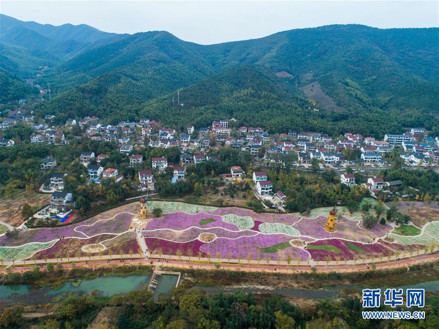 11月2日,空中俯瞰小浦鎮(zhèn)的“五彩花海”,多彩的花海與金黃的銀杏林構(gòu)成了一幅美麗的秋季風(fēng)景(無(wú)人機(jī)拍攝)。 新華社記者 徐昱 攝
