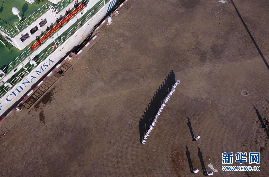 11月3日,海事執(zhí)法人員準(zhǔn)備登上“海巡21”輪(無人機(jī)拍攝)。當(dāng)日,隨著“海巡21”輪緩緩駛離海口海事監(jiān)管基地碼頭,由瓊桂粵海事部門共同開展的瓊州海峽、北部灣及環(huán)海南島水域跨轄區(qū)聯(lián)合巡航執(zhí)法活動(dòng)揭開序幕。新華社記者楊冠宇攝