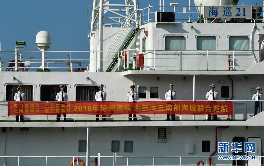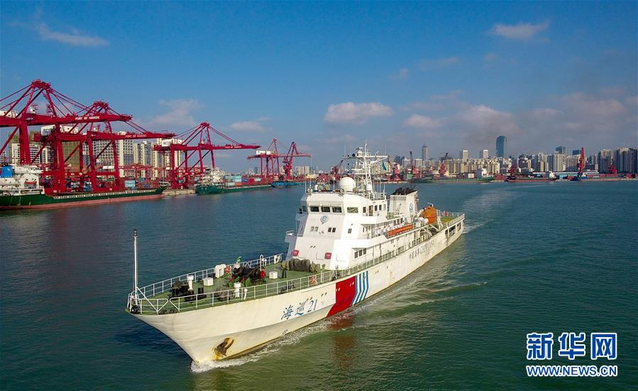 11月3日,海事執(zhí)法人員乘“海巡21”輪出發(fā)。當(dāng)日,隨著“海巡21”輪緩緩駛離??诤J卤O(jiān)管基地碼頭,由瓊桂粵海事部門共同開展的瓊州海峽、北部灣及環(huán)海南島水域跨轄區(qū)聯(lián)合巡航執(zhí)法活動(dòng)揭開序幕。新華社記者楊冠宇攝