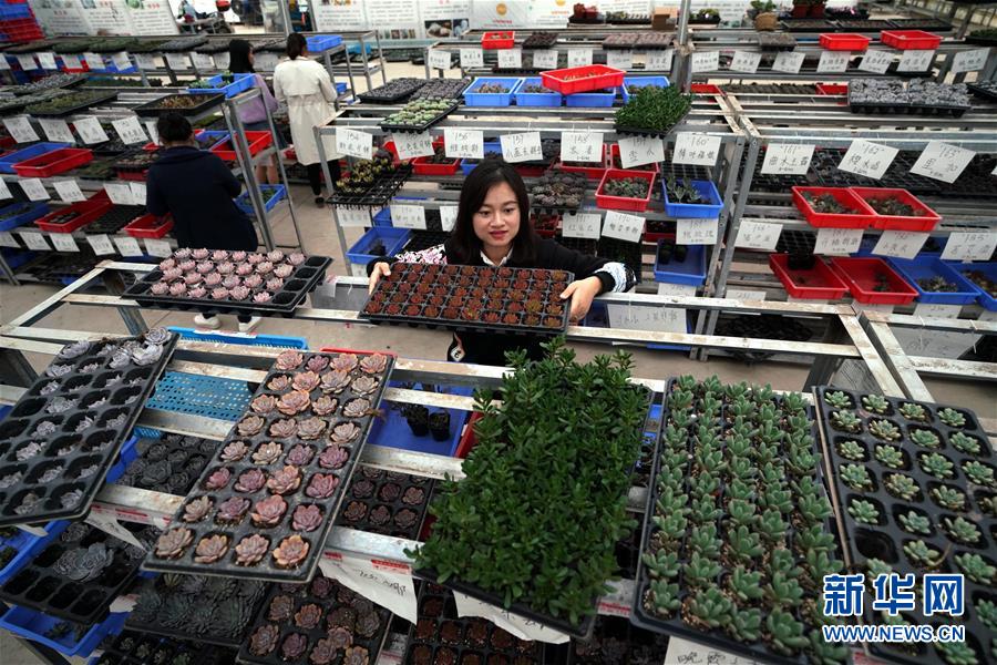 11月3日,在貴溪市歐綠多肉植物種植基地,工作人員為“雙十一”購物節(jié)備貨。新華社記者宋振平攝