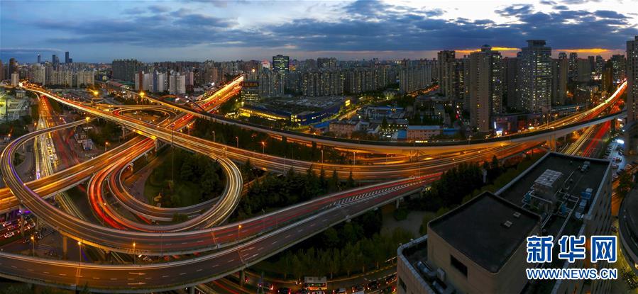 11月1日拍攝的上海夜景(全景拼接照片)。 首屆中國國際進(jìn)口博覽會即將在上海開幕。美麗的上海張開懷抱,迎接八方來客。 新華社記者 殷剛 攝