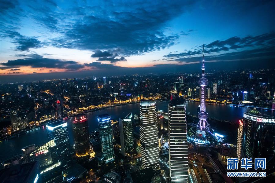 這是11月3日傍晚時分拍攝的的上海陸家嘴和外灘夜景。 首屆中國國際進口博覽會即將在上海開幕。美麗的上海張開懷抱,迎接八方來客。 新華社記者 李鑫 攝