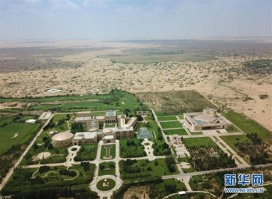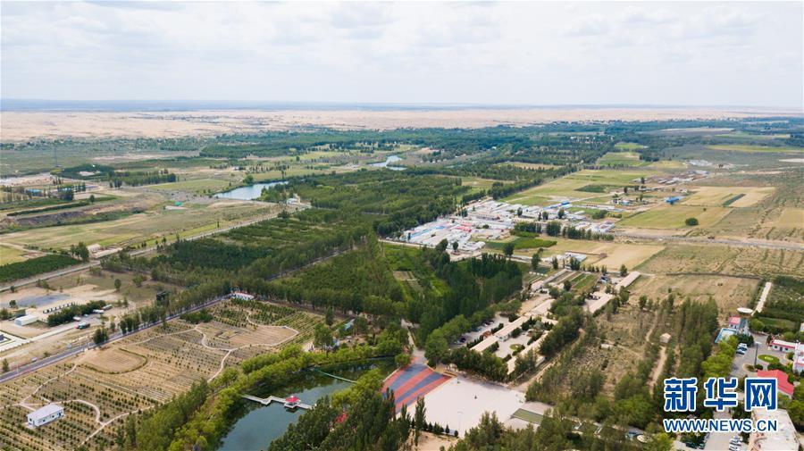 內蒙古鄂爾多斯市恩格貝生態(tài)旅游區(qū)(6月8日無人機拍攝)。 新華社記者彭源攝