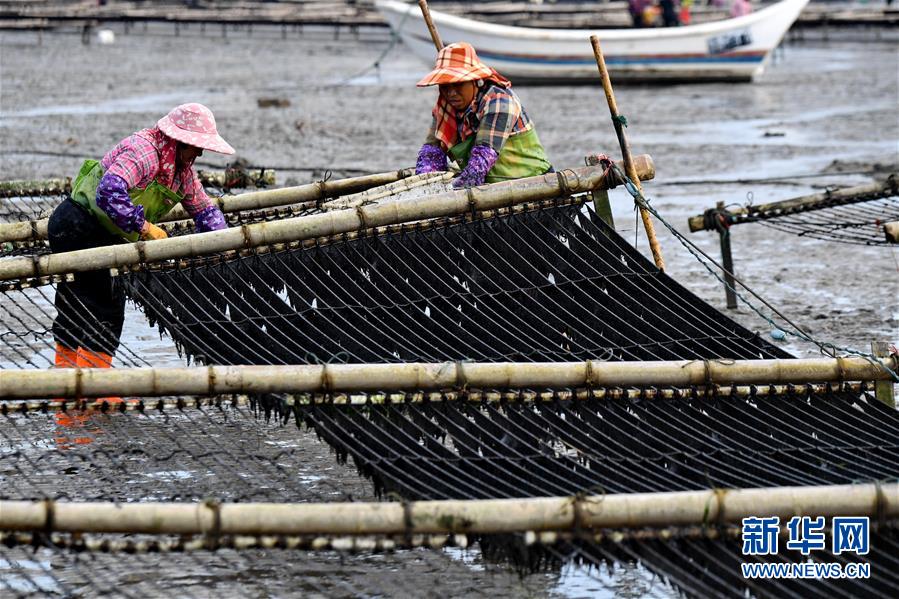 10月24日,福建莆田蔣山村村民在收獲紫菜?!⌒氯A社記者姜克紅 攝