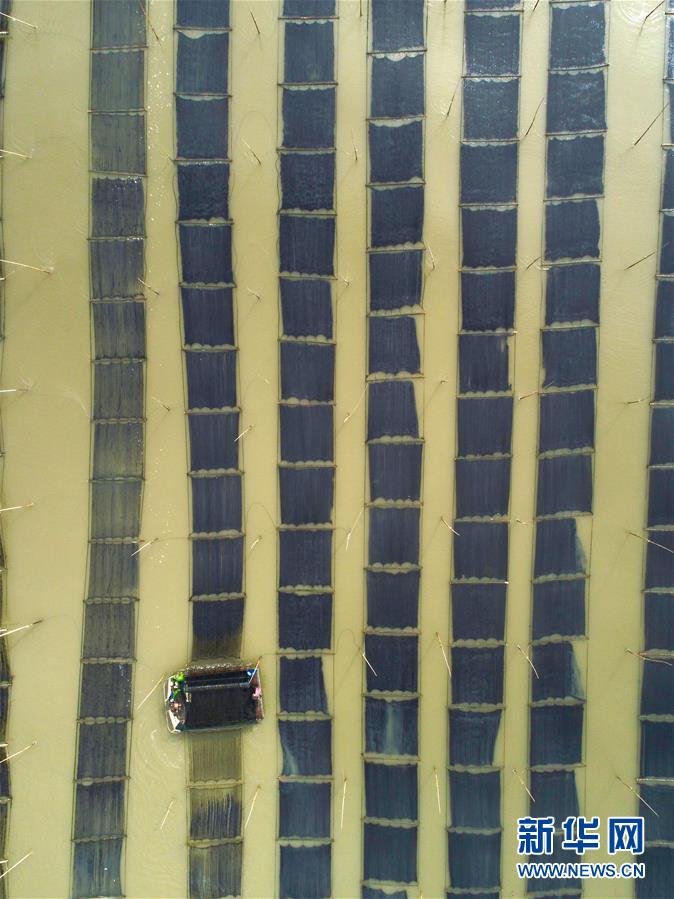 近日,福建省莆田市湄洲灣北岸蔣山村的2000多畝種植紫菜進入收割旺季,當(dāng)?shù)卮迕駬屖疹^水紫菜。蔣山村現(xiàn)有200多家紫菜種植戶,紫菜種植成為當(dāng)?shù)卮迕裨鍪罩赂坏闹饕a(chǎn)業(yè)。