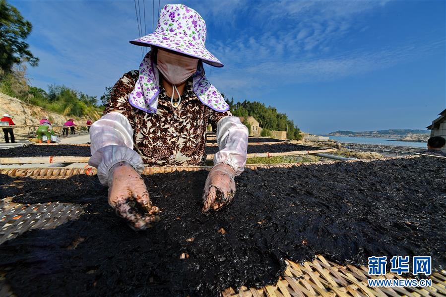 10月24日,福建莆田蔣山村村民在曬紫菜?! ⌒氯A社記者張國俊 攝