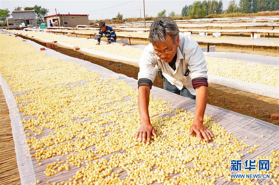 10月22日,樂亭縣姜各莊鎮(zhèn)南海濱村的養(yǎng)殖戶在晾曬扇貝柱。 近年來,河北省樂亭縣通過建設(shè)海洋牧場科學(xué)布局養(yǎng)殖區(qū)域、采用新技術(shù)新模式提升養(yǎng)殖質(zhì)量、成立專業(yè)合作社實行集約化經(jīng)營等措施,積極助推扇貝養(yǎng)殖加工產(chǎn)業(yè)發(fā)展,取得良好效益。據(jù)介紹,今年該縣扇貝養(yǎng)殖面積達32萬畝,預(yù)計鮮貝產(chǎn)量達5.5萬噸,產(chǎn)值3.8億元。 新華社記者楊世堯攝