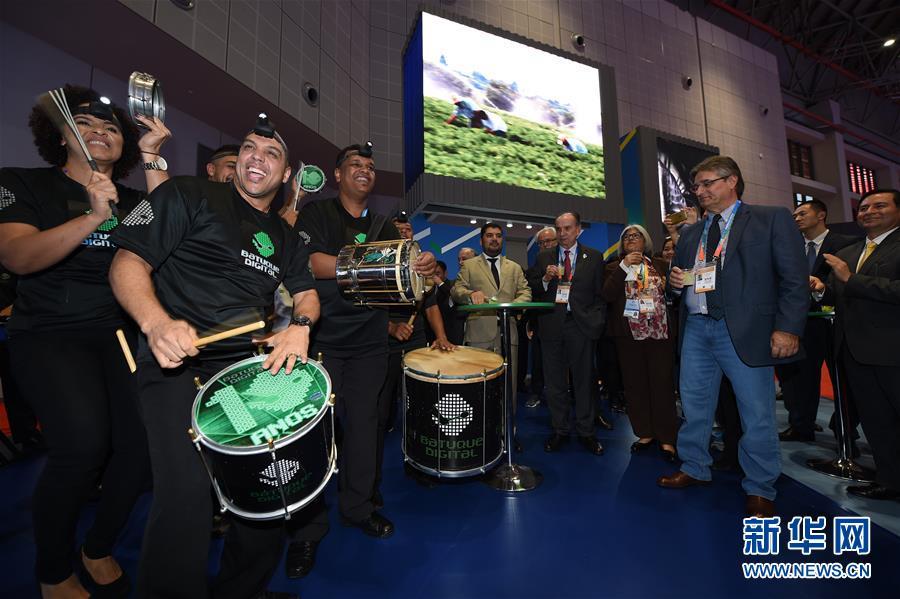 11月5日,一支來自巴西的樂隊在巴西展館表演。 新華社記者 韓瑜慶 攝