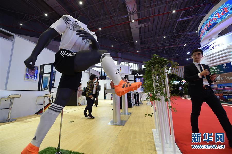 這是11月5日在英國展館內(nèi)展出的一座英格蘭足球超級聯(lián)賽冠軍獎杯的復制品。 新華社記者 劉大偉 攝
