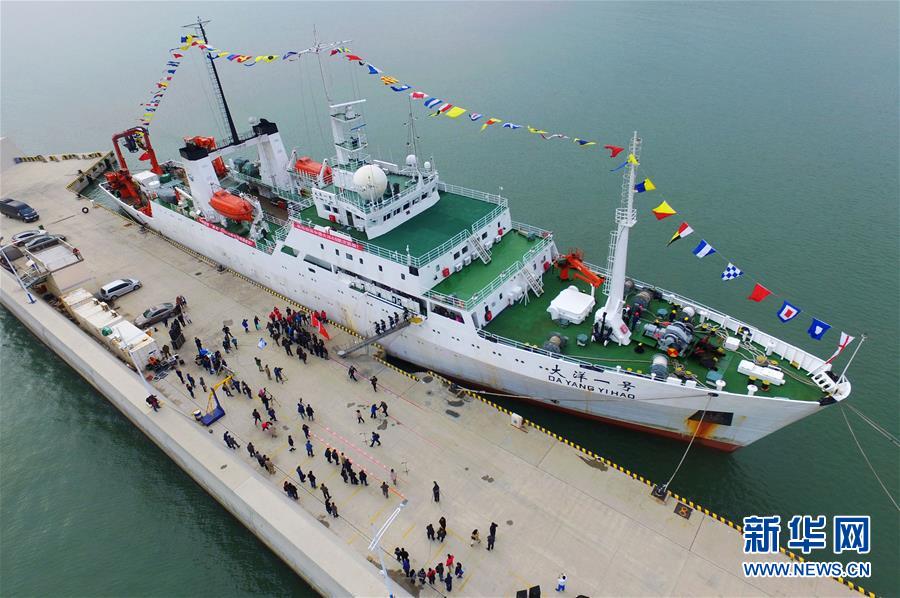 11月7日,“大洋一號”駛?cè)胛挥谇鄭u市嶗山區(qū)的青島海洋科學(xué)考察基地碼頭。 新華社發(fā)(王海濱 攝)
