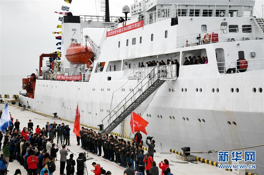 11月7日,青島海洋科學考察基地碼頭舉行凱旋儀式,迎接完成中國大洋48航次任務的科考隊員。 新華社記者 李紫恒 攝
