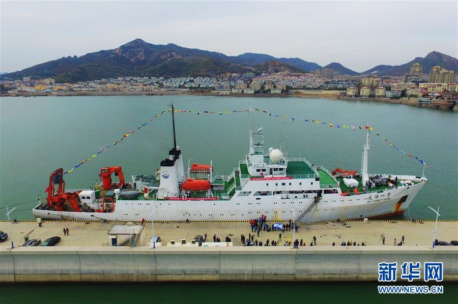 11月7日,“大洋一號”??吭谇鄭u市嶗山區(qū)的青島海洋科學(xué)考察基地碼頭(無人機拍攝)。 新華社發(fā)(王海濱 攝)